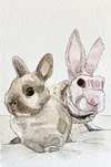 Cinnamon and Bigglesworth, Ink and Watercolor on Paper, 5X7”
